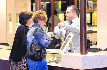 第十五屆阿布扎比國際珠寶鐘表展日前在阿聯(lián)酋首都阿布扎比國際會(huì)展中心拉開帷幕。在為期5天的展會(huì)期間,來自16個(gè)國家和地區(qū)的110余家著名珠寶鐘表制造商將向觀眾集中展示2007年珠寶鐘表行業(yè)的最新加工工藝及款式流行趨勢(shì)。本次參展珠寶商品在設(shè)計(jì)上強(qiáng)調(diào)傳統(tǒng)與現(xiàn)代的融合,廣泛使用鏤空、噴砂工藝,并在此基礎(chǔ)上更加突顯飾品的奢華感。據(jù)展會(huì)主辦方透露,全部參展珠寶總價(jià)值高達(dá)41億美元,為歷屆展會(huì)之冠。阿布扎比國際珠寶鐘表展創(chuàng)辦于1992年,每年舉辦一屆,是中東地區(qū)規(guī)模最大、檔次最高的珠寶鐘表博覽會(huì)之一。阿聯(lián)酋是全球珠寶消費(fèi)最旺盛的國家,2006年各類黃金、珠寶、鉆石進(jìn)口總額超過82億美元,人均黃金消費(fèi)量高達(dá)23克。圖為參觀者在一家創(chuàng)立于1875年的歐洲知名珠寶老店展柜前選購商品。 | |