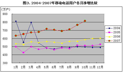 。ㄋ模┰鲋禈I(yè)務(wù)滲透率快速增長 語音增值、移動短信、WAP等增值業(yè)務(wù)在電話用戶中的滲透率快速增長。以個性化回鈴業(yè)務(wù)為例,2007年1-10月,固定個性化回鈴用戶新增3412.9萬戶,達(dá)到8768.7萬戶,滲透率從上年底的14.6%上升到23.7%;移動個性化回鈴用戶新增10010.7萬戶,達(dá)到30672.3萬戶,滲透率從上年底的44.8%上升到57.7%。