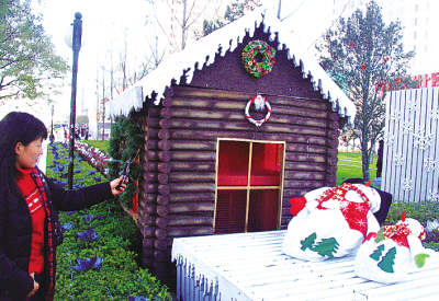 圣誕、新年即將到來,北京街頭節(jié)日氣氛漸濃。圖為搭建在長安街上的一座“圣誕小屋”,吸引了過往行人拍照、留念。