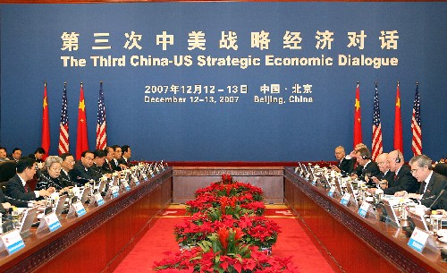 12月12日,第三次中美戰(zhàn)略經(jīng)濟(jì)對話在北京開幕。中國國務(wù)院副總理吳儀和美國財(cái)政部部長保爾森作為兩國元首特別代表共同主持對話。新華社記者 高潔