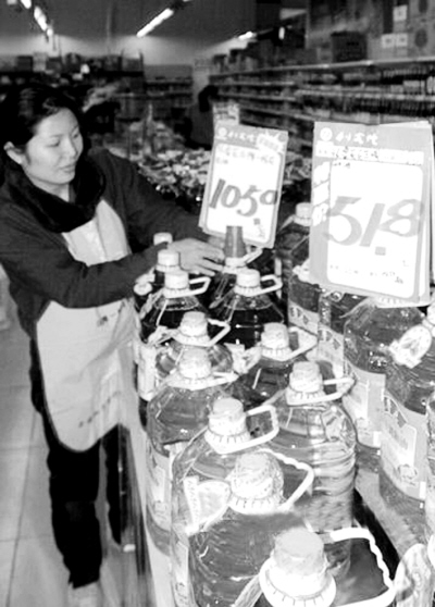 12月8日,家樂福北京方圓店。 已經(jīng)大半年沒有買過食用油的陳先生一次性購買了兩桶5.4升裝魯花1級壓榨花生油。當(dāng)時(shí),該花生油售價(jià)為105.9元。而在數(shù)周前,這個(gè)價(jià)格還是99.9元!皟r(jià)格還會漲的!奔覙犯S皖愗浖艿拇黉N員說。 花生油僅僅是個(gè)縮影。據(jù)國家有關(guān)部門價(jià)格監(jiān)測顯示,在11月份的上半月內(nèi),國內(nèi)市場食用油價(jià)格呈現(xiàn)全面上漲之勢。其中,全國花生油平均零售價(jià)格為每升