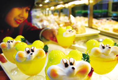 12月12日,安徽省淮南市一家蛋糕店的店員擺放可愛的生肖鼠造型甜點(diǎn)。農(nóng)歷鼠年日益臨近,以生肖鼠為造型的各種糕點(diǎn)紛紛上柜,受到顧客喜愛。