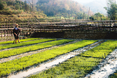 新年伊始,海南五指山區(qū)已經(jīng)進入春播大忙季節(jié),當?shù)乩杳缱迦罕娬泳o在田間耕作,力爭獲得好收成。圖為1月1日,五指山市水滿村一位村民正在管理秧苗。