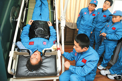 1月2日,第三屆航天體驗(yàn)營的營員們來到中國航天科研訓(xùn)練中心,參加心理測試訓(xùn)練、“太空廚房”體驗(yàn)、艙內(nèi)航天服裝備操作體驗(yàn)等活動,體驗(yàn)太空生活。圖為一名營員體驗(yàn)血液重新分布適應(yīng)性訓(xùn)練。