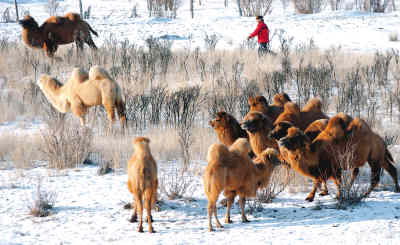近幾年,新疆阿勒泰地區(qū)哈薩克族牧民中興起經(jīng)營駱駝奶的熱潮,生意十分紅火。圖為布爾津縣窩依莫克鄉(xiāng)哈臺村哈薩克族牧民在趕駱駝。