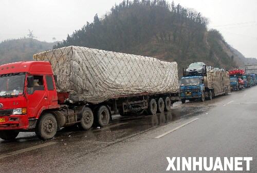 受北方強(qiáng)冷空氣的影響,自本月12日以來,貴州大部分地區(qū)氣溫持續(xù)降低,出現(xiàn)了罕見的凝凍天氣,致使境內(nèi)多條高速公路凝凍,有在外地打工返鄉(xiāng)的民工竟被困路上三日三夜。面對這幾十年不遇的雪災(zāi),當(dāng)?shù)毓饭芾聿块T共在路面上灑下700噸鹽稀釋冰塊。至昨(22)日上午,受困高速公路的車輛有3800輛左右,受困人員為2萬余人。 |