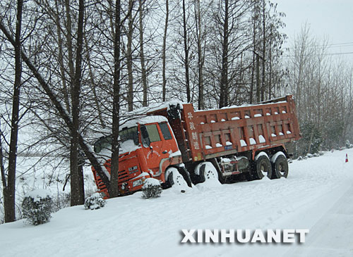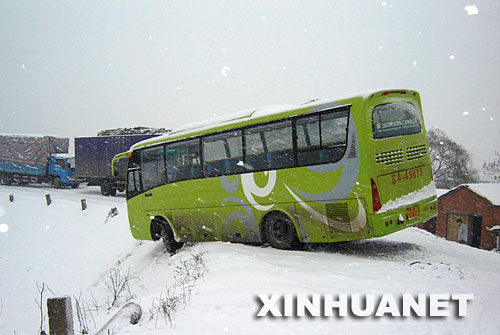 1月27日,一輛載客大客車由江蘇駛往安徽廬江,繞道行至巢湖市無為縣裕新路一彎道時,因路面積雪濕滑,車輛失控險些栽進(jìn)裕溪河,聞訊趕到的交警立即組織施救并將乘客安全轉(zhuǎn)運(yùn)。1月26日,安徽省巢湖市出現(xiàn)暴雪天氣,給人們出行帶來很大不便,道路交通受到影響。巢湖市氣象臺發(fā)布了暴雪和道路結(jié)冰橙色預(yù)警。 新華社發(fā)