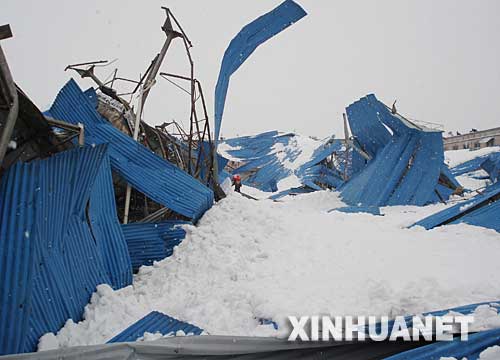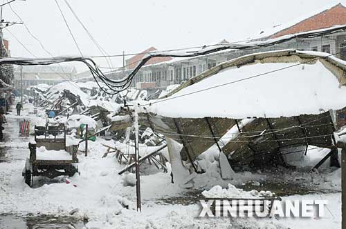 | 1月26日拍攝的巢湖市蘇灣鎮(zhèn)被大雪壓塌的農(nóng)貿(mào)市場(chǎng)。新華社發(fā) |