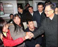 溫家寶在湖南湘潭市郊外查看電力設施受損情況