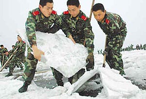 凍雨結(jié)冰對(duì)林業(yè)造成的災(zāi)害不可估量,F(xiàn)在保通電、保通路、保民生,主要是干部、武警、民兵、電力職工在忙;過(guò)了年,就該農(nóng)民、林農(nóng)忙生產(chǎn)自救了。