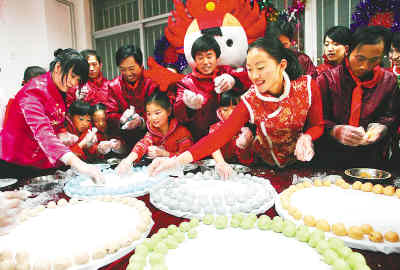 師生們?yōu)楣と藥煾当硌萘司实墓?jié)目,還和工人們一起賞花燈、猜燈謎,一起動手包出象征奧運五環(huán)的五彩湯圓,共同祝福北京奧運,陶醉在喜慶祥和的節(jié)日氣氛中。