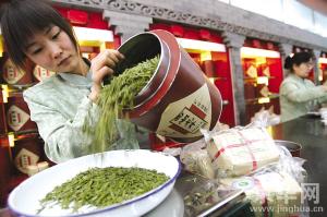 昨天(3月23日),經(jīng)歷雪災(zāi)的首批明前西湖龍井茶葉運(yùn)抵京城,并在北京吳裕泰茶莊開(kāi)售。年初雪災(zāi)使春茶上市的時(shí)間比往年推遲了10多天,但由于出芽前冰雪殺死了許多害蟲(chóng)和細(xì)菌,今年的春茶質(zhì)量比往年要好。首批明前茶售價(jià)和去年持平為每斤5600元。