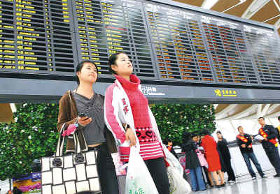 3月26日,上海浦東國際機(jī)場2號航站樓和第三跑道正式投入運(yùn)營,標(biāo)志著歷時近3年建設(shè)的浦東機(jī)場擴(kuò)建工程全面建成啟用。浦東機(jī)場擴(kuò)建工程建成后將使年旅客吞吐量達(dá)到6000萬人次,可有效滿足北京奧運(yùn)會和2010年上海世博會期間航空運(yùn)輸量高峰的需要。圖為3月26日,浦東國際機(jī)場新航站樓迎來首批旅客。