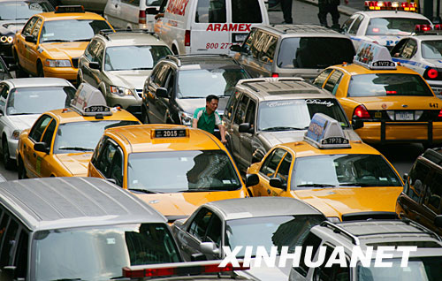 這是2007年5月31日拍攝的車輛擁堵在美國紐約曼哈頓42街的資料照片。