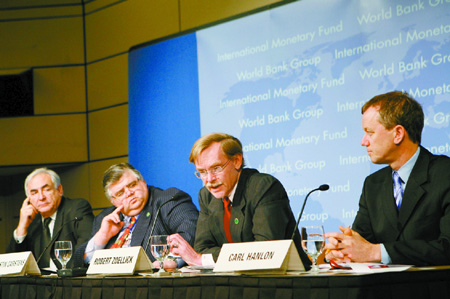 聯(lián)合發(fā)展委員會會議結(jié)束標(biāo)志著世界銀行和國際貨幣基金組織今年春季會議的閉幕。世行和國際貨幣基金組織聯(lián)合發(fā)展委員會于1974年成立,其宗旨是研究全球發(fā)展問題。該委員會通常一年舉行兩次會議。 |