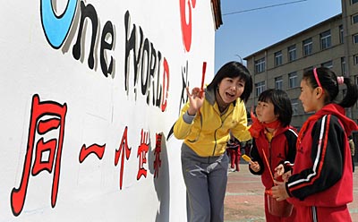 近日,沈陽市三臺子第四小學將校園里近百米長的圍墻涂成白色,由教師帶領同學創(chuàng)作與奧運有關的繪畫作品,既美化了校園環(huán)境,又增加師生對奧運知識的了解。