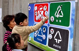 日前,上海開始在居民區(qū)推行新的生活垃圾分類管理辦法,紅、綠、藍(lán)、黑四色嶄新的垃圾桶出現(xiàn)在居民區(qū)中,引導(dǎo)居民主動對垃圾篩選分類,生活垃圾將不再是“放錯地方的資源”。 據(jù)上海市容環(huán)衛(wèi)部門介紹,除了大件垃圾和裝修垃圾以外,上海新的垃圾分類方式把居民區(qū)垃圾分為:玻璃、有害垃圾、可回收物、其他垃圾四類,對應(yīng)的垃圾桶顏色分別為綠色、紅色、藍(lán)色和黑色。 4月19日起,上海在100個居民小區(qū)率先推行生活垃圾四色新分類模式,下半年四色垃圾桶還將推廣至全上海1000個封閉式居住區(qū)。 除封閉式居住區(qū)外的其他兩大區(qū)域,將實施不同的分類方式:年內(nèi),景觀道路、主要旅游景點等公共場所將全面實施生活垃圾二分類,即分為可回收物、其他垃圾;1000家政府機關(guān)、學(xué)校、大中型企事業(yè)單位等將實施生活垃圾三分類,即可回收物、有害垃圾和其他垃圾。上海市容環(huán)衛(wèi)部門負(fù)責(zé)人介紹,上海計劃五年內(nèi)形成生活垃圾分類收集、分類運輸、分類處置全過程暢通、有序的物流系統(tǒng),實現(xiàn)全程管理。垃圾分類作為發(fā)展循環(huán)經(jīng)濟、落實節(jié)能減排要求的一項重要措施,不僅是對資源的一種充分利用,更是綠色奧運的一種體現(xiàn)。 上海一位市民程阿姨說:“奧運快到了,我們也要從自身做起,要改變以往生活中的不良習(xí)慣,真正讓綠色融入生活中去。”