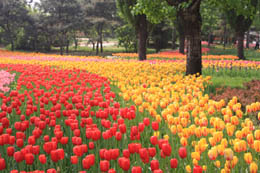 郁金香原產(chǎn)荷蘭,是該國的國花,后引種我國,芳名四溢,早已成為春季賞花的重頭戲。郁金香體態(tài)優(yōu)美,高雅含蓄,亭亭玉立,色澤艷美,在花語中她代表了“愛的表白”,如果你是害羞內(nèi)向的人,不妨邀上心儀的另一半前往觀賞,借機表達愛意。當(dāng)然,來自國外的朋友也不妨到此一游,感受一下花開異度依舊爛漫的情懷。 花期:4月中旬至5月上旬 景點:北京中山公園 以“奧運序曲——春天的暢想”為主題的中山公園第十三屆郁金香暨春花展覽于4月15日到5月上旬舉辦。展覽期間陸續(xù)展出50多萬株,142個品種,13個類型的郁金香,并通過實物造型、人物雕塑及主題花壇相結(jié)合的布展手法,在園內(nèi)精心布展了“喜慶迎賓”、“歐洲風(fēng)情”、“和諧家園”、“異彩流芳”、“童話森林”、“百花迎春”等6個主題景區(qū)。30余種郁金香新品均是首次在本公園展出。