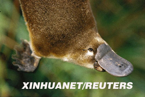 長著鴨子嘴、骨骼結(jié)構(gòu)酷似爬行動(dòng)物的鴨嘴獸作為一種奇特的哺乳動(dòng)物曾引起眾多學(xué)術(shù)爭論。研究人員5月7日公布一份研究報(bào)告,通過破譯鴨嘴獸的基因組發(fā)現(xiàn),鴨嘴獸是一個(gè)基因混合體:包含部分鳥類基因,部分爬行動(dòng)物類基因以及部分哺乳動(dòng)物類基因。鴨嘴獸基因組破譯將有助于研究人類和其他哺乳動(dòng)物的進(jìn)化起源。這是2002年5月15日拍攝的一只鴨嘴獸的資料照片。