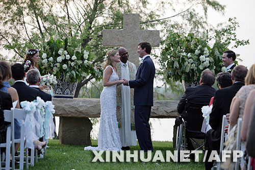 10日傍晚,布什總統(tǒng)的愛女詹娜在美國得克薩斯州克勞福德農(nóng)場舉行露天婚禮,與交往已久的男友黑格共結(jié)連理。 新華社/法新 |