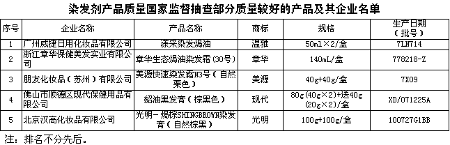 抽查結(jié)果表明,一是此次抽查的染劑pH值、苯二胺、鉛、汞、砷等直接涉及人體健康安全的檢測項(xiàng)目全部合格;二是市場占有率較高的大中型企業(yè)的產(chǎn)品質(zhì)量穩(wěn)定,產(chǎn)品實(shí)物質(zhì)量抽樣合格率為100%。