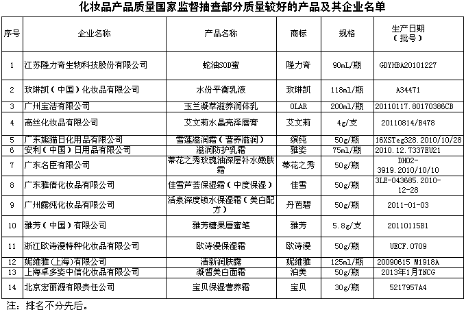 為了維護(hù)消費(fèi)者的合法權(quán)益,促進(jìn)化妝品行業(yè)健康發(fā)展,國家質(zhì)檢總局組織對化妝品產(chǎn)品質(zhì)量進(jìn)行了國家監(jiān)督抽查,共抽查了北京、上海、浙江、江蘇、廣東、福建等6個省、直轄市62家企業(yè)生產(chǎn)的80種產(chǎn)品(不涉及出口產(chǎn)品),產(chǎn)品實(shí)物質(zhì)量抽樣合格率為99.7%。