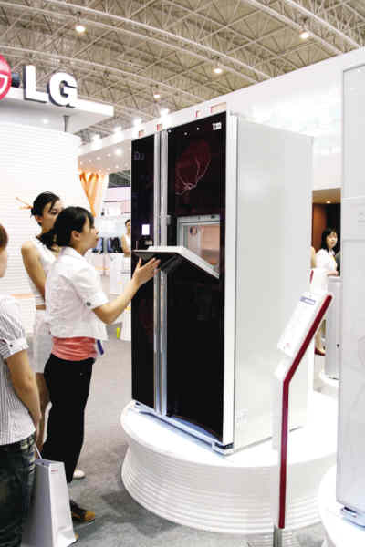 在展會(huì)現(xiàn)場(chǎng),松下推出的目前最大的等離子電視,150英寸的大畫面顯示屏吸引了許多參觀者駐足觀賞!斑@真是把電影院搬回了家,但是比電影更清晰!币晃粎⒂^者這樣感慨。 三星電子則推出了3D立體影像的等離子電視。戴上特殊的3D眼鏡收看這樣的電視,用身臨其境四個(gè)字來(lái)形容觀者的感受恰如其分。 受地震影響的長(zhǎng)虹也把最新的產(chǎn)品帶到了會(huì)場(chǎng),推出了世界上第一臺(tái)“冰吧空調(diào)”。一臺(tái)漂亮的柜式空調(diào),左邊和普通空調(diào)無(wú)異,右邊卻是透明的玻璃門,里面可以存儲(chǔ)水果、紅酒、冰塊,既節(jié)能又環(huán)保。