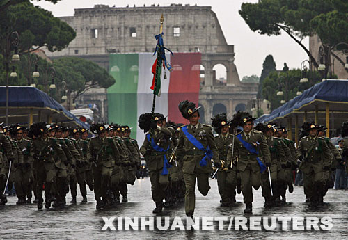 6月2日,在意大利首都羅馬,士兵們參加國慶日的閱兵式。當日是意大利國慶日。 新華社/路透