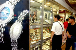 琳瑯滿目的香港鐘表店吸引游客駐足觀看。本報(bào)記者:王小川