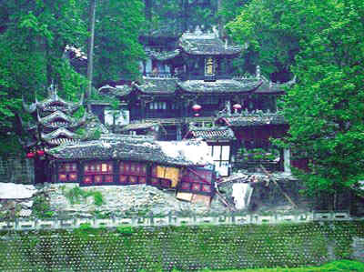 | 著名的二王廟隨山體滑坡垮塌 | “這甚至比一場(chǎng)戰(zhàn)爭(zhēng)的破壞都大!”站在因地震垮塌的二王廟一片殘?jiān)珨啾谂,?guó)家文物局副局長(zhǎng)童明康滿臉焦慮、連聲哀嘆。 截至5月23日,5·12大地震共造成四川省接近3/4的全國(guó)重點(diǎn)文物保護(hù)單位不同程度受損——128處中有79處受損,另外還有169處省級(jí)文物保護(hù)單位遭受不同程度的損失;館藏文物方面,損失達(dá)1839件,其中珍貴文物151件。初步估算,整個(gè)四川文物系統(tǒng)經(jīng)濟(jì)損失達(dá)600多億元。 為第一時(shí)間對(duì)受災(zāi)文物提出搶救方案,近日,國(guó)家文物局派出一支由國(guó)內(nèi)頂級(jí)古建筑修復(fù)專家組成的專家團(tuán)趕赴四川災(zāi)區(qū)考察。 凌云寺藏經(jīng)樓墻體開裂,大雄寶殿報(bào)身佛背光左下部脫落;眺望樂山的最佳景觀——烏尤寺景云亭基座有三面出現(xiàn)了垂直線裂縫,最寬裂縫達(dá)5厘米;鐘亭博脊出現(xiàn)裂縫,地面下沉;青衣別島處翹角脫落。而在峨眉山古建筑群,磚殿內(nèi)小佛像掉落、損毀,窗子開裂;萬年寺屋面瓦片滑落,水管破裂;圣積寺銅塔塔剎掉落;報(bào)國(guó)寺佛像脖子斷裂。 目前中國(guó)列入世界遺產(chǎn)名錄的35處中,四川省有4處,位列全國(guó)三甲,除了世界文化遺產(chǎn)1處(青城山—都江堰),還有世界自然和文化雙重遺產(chǎn)1處(峨眉山·樂山大佛),以及兩處世界自然遺產(chǎn)