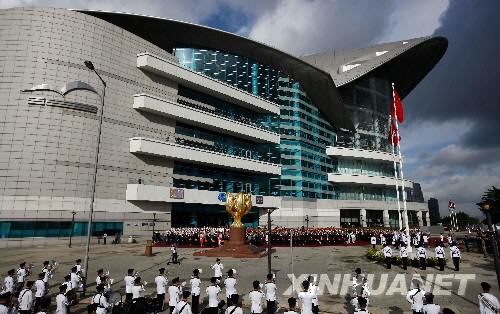 當日,為慶祝香港回歸祖國11周年,香港特區(qū)政府在香港金紫荊廣場舉行隆重的升旗儀式。