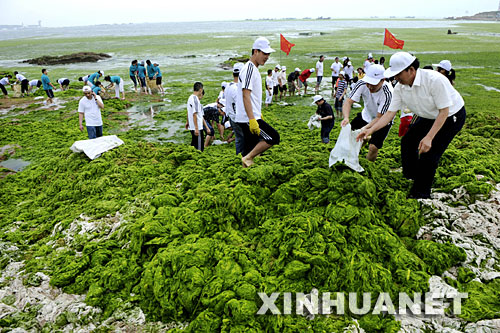 6月上旬以來(lái),青島市近海海域開始出現(xiàn)大面積滸苔,最大影響面積達(dá)到1.3萬(wàn)平方公里,實(shí)際滸苔覆蓋面積約為400平方公里,對(duì)城市景觀和奧帆賽運(yùn)動(dòng)員賽前訓(xùn)練產(chǎn)生了一定的影響。面對(duì)突如其來(lái)的自然災(zāi)害,青島全市上下積極行動(dòng),社會(huì)各界群眾從海上、潮間帶、岸邊進(jìn)行全方位的打撈清理。目前,每天已有超過(guò)萬(wàn)人、千余艘各類船只、數(shù)十臺(tái)裝運(yùn)機(jī)械投入到清理行動(dòng)中。截至6月28日,清理滸苔數(shù)量超過(guò)10萬(wàn)多噸。