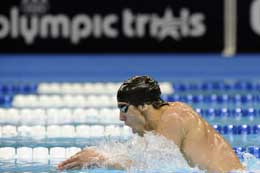 6月29日,美國名將菲爾普斯在比賽中。當(dāng)日,在內(nèi)布拉斯加州的奧馬哈舉行的美國奧運(yùn)會游泳選拔賽男子400米個人混合泳決賽中,菲爾普斯以4分05秒25的成績獲得第一名,并創(chuàng)造該項目新的世界紀(jì)錄。