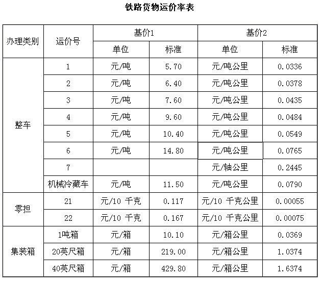 為緩解鐵路貨物運輸價格偏低矛盾,疏導成品油價格調(diào)整對鐵路運輸成本的影響,經(jīng)研究,決定自2008年7月1日起,調(diào)整國家鐵路貨物統(tǒng)一運價。調(diào)整后的《鐵路貨物運價率表》附后。