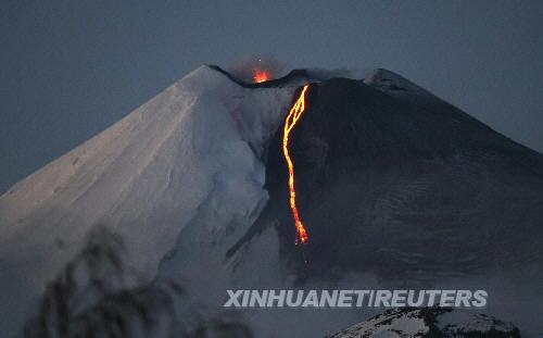 7月2日,在智利南部的切爾肯科,亞伊馬火山噴發(fā)出大量熔巖。