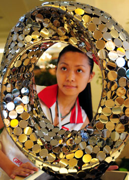 日前,國(guó)際奧委會(huì)奧林匹克珍藏品中國(guó)巡展登陸貴陽(yáng)。數(shù)百件歷屆奧運(yùn)珍品及北京奧運(yùn)會(huì)主要場(chǎng)館模型等展品,吸引了眾多市民到場(chǎng)參觀。圖為一名女孩在巡展上觀看一件奧運(yùn)珍品。