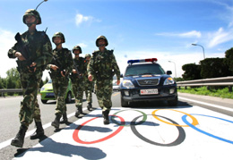7月12日,奧運(yùn)專用道武裝處突車組出征儀式在北京舉行,39輛嶄新的防彈車正式上路執(zhí)勤,擔(dān)負(fù)奧運(yùn)會(huì)專用道路的巡邏、處理突發(fā)事件、反恐任務(wù)。