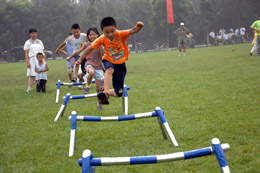 日前,北京海淀區(qū)四季青鎮(zhèn)在玉東園體育廣場(chǎng)上舉行了“社區(qū)奧運(yùn)會(huì)”,社區(qū)市民在家門口體驗(yàn)奧運(yùn)、參與奧運(yùn)。