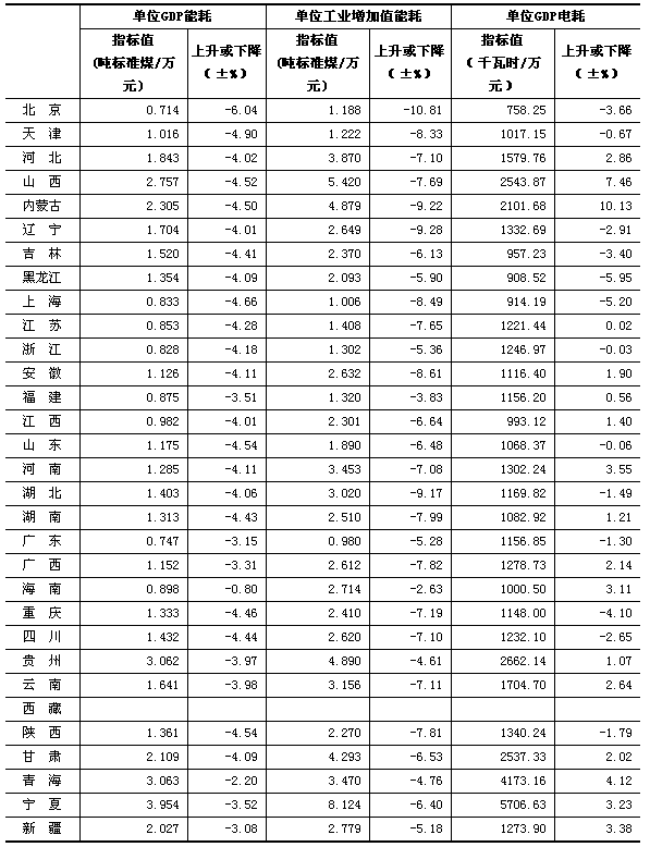 2007年各省、自治區(qū)、直轄市單位GDP能耗等指標(biāo)公報(bào) 國家統(tǒng)計(jì)局 國家發(fā)展和改革委員會 國家能源局