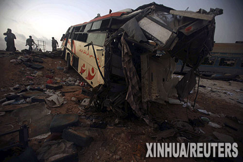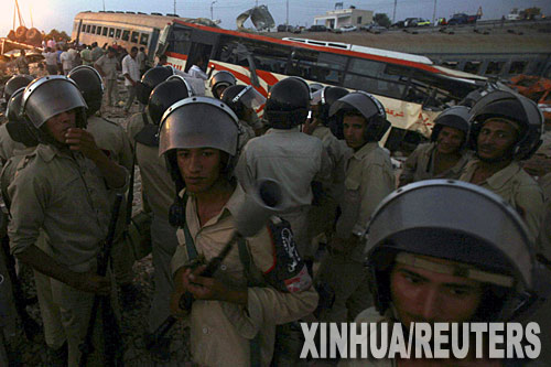 7月16日,警察在埃及北部城市馬特魯附近發(fā)生火車與汽車相撞事故的地點(diǎn)檢查。據(jù)埃及中東通訊社報(bào)道,當(dāng)日,馬特魯附近發(fā)生一起火車與多輛汽車相撞事故,造成至少37人死亡,另有38人受傷。 新華社/路透