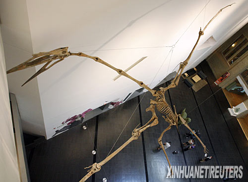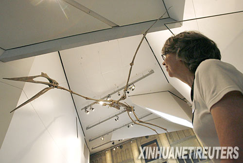 7月17日,世界上最大的風神翼龍化石骨架在加拿大多倫多市的安大略皇家博物館內展出。這具骨架體長6米,翼展達12米。風神翼龍是地球生命史上最大的飛行動物之一。 新華社/路透