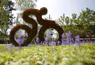 奧運會將至,北京各主路街心花園的奧運主題花壇靜靜裝點著盛夏的北京,在給京城帶來片片綠色、絲絲涼意的同時,把奧運氣氛逐漸推向火熱。