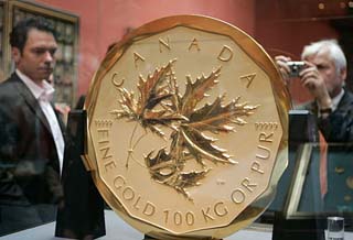 日前,由加拿大皇家鑄幣局鑄造的100公斤金幣運抵京城。據(jù)悉,這是該枚金幣首次在中國亮相,它將于8月8日北京2008年奧林匹克博覽會現(xiàn)場與廣大市民見面。 據(jù)悉,這枚金幣是由加拿大皇家鑄幣局于2007年5月3日推出的全球首枚100公斤純金金幣,被加拿大媒體譽為“很厚的黃金比薩”,其面值約合100萬加元(約合700萬元人民幣)。加拿大皇家鑄幣局采用了世界最先進的鑄幣技術(shù),使得該枚金幣的純度高達99.999%,且重量驚人,是目前世界上純度最高的金幣。 此枚金幣直徑53厘米,厚3厘米。如今,它已經(jīng)以“世界上最大的金幣”頭銜而被載入吉尼斯世界記錄。