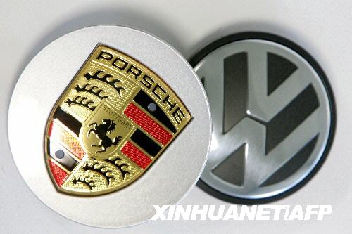 這是2005年9月26日在德國威廉港拍攝的保時(shí)捷(左)與大眾的標(biāo)志。