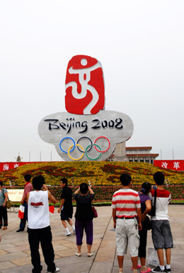當(dāng)日距北京奧運(yùn)會(huì)開(kāi)幕還有10天。天安門(mén)廣場(chǎng)鮮花盛放,游人如織!拔鑴(dòng)的北京”、“五洲四海 喜慶奧運(yùn)盛會(huì)”等花壇將天安門(mén)廣場(chǎng)裝飾一新,充滿節(jié)日的氣氛。