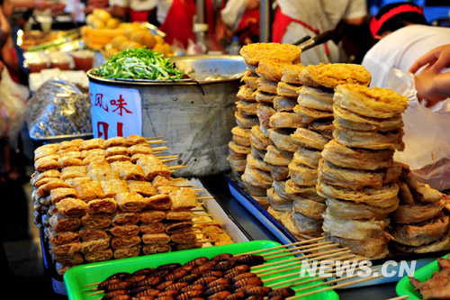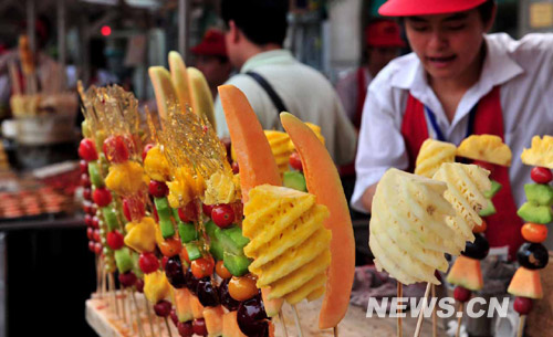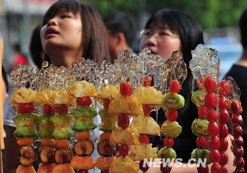 誘人的北京小吃——冰糖葫蘆(7月29日攝)。