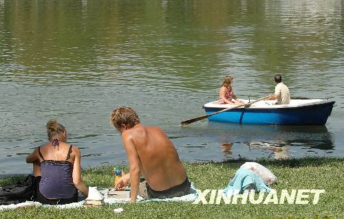 8月4日,在西班牙首都馬德里,兩位游客在雷蒂羅公園的湖邊休息。近日,伊比利亞半島遭遇熱浪襲擊,部分地區(qū)最高氣溫已突破40攝氏度。西班牙政府已發(fā)出高溫警告,要求居民注意防暑降溫。