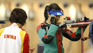 雅典奧運(yùn)會女子氣步槍銅牌得主、捷克美女卡·埃蒙斯是四個(gè)人中練得最刻苦的。由于四人都將參加氣步槍和步槍三姿兩項(xiàng)比賽,所以如何調(diào)配訓(xùn)練時(shí)間成了件難事。杜麗、加爾金娜、費(fèi)什福特三人都選擇了一天練一個(gè)項(xiàng)目,交替進(jìn)行,而埃蒙斯在5日給自己加了量,一大早練完10米后,她又馬不停蹄地趕到了50米場地。