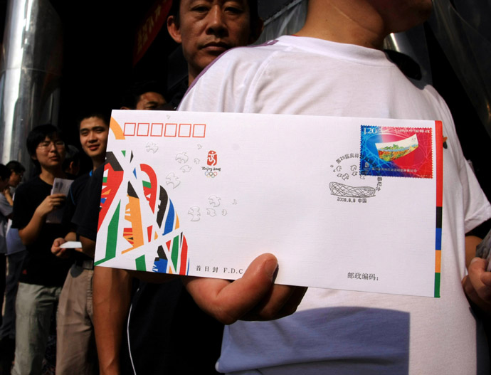 8月8日,合肥市民排隊(duì)購(gòu)買奧運(yùn)會(huì)開(kāi)幕式相關(guān)郵品。當(dāng)日,《第29屆奧林匹克運(yùn)動(dòng)會(huì)開(kāi)幕式》紀(jì)念明信片在全國(guó)發(fā)行。此外,《第29屆奧林匹克運(yùn)動(dòng)會(huì)開(kāi)幕紀(jì)念》郵票及首日封等同時(shí)發(fā)售。
