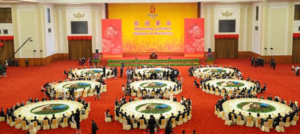 8月8日,中國國家主席胡錦濤和夫人劉永清為出席北京奧運(yùn)會的貴賓舉行歡迎宴會。